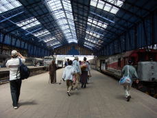 | カイロ駅 | 点呼してます・・全員揃いましたか | 長い列車・・乗り込みます |