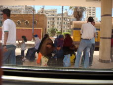 チョコレート色の電車に乗って 室内のシーツはカラフルでエジプト の生活感が有りました。 レトロな味です 顔を覆ってお喋りを・・どんな話かな アレキサンドリア・マスル駅到着 |