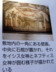 | カタコンベ(コム・エル・シュカファ) 1900年に発見され、エジプトで最大級のカタコンベを見学しました(他にもあるのですね) カタコンベとはキリスト教徒の共同墓地のことで、ローマを逃れた キリスト教徒が隠れ礼拝したところです 古代エジプトと古代ローマの建築様式を取り入れて、1〜2世紀頃に造られ グルグル回ってラセン階段を降りると、広間に出る 薄暗くヒンヤリとした空気に包まれました。 3層に成っているカタコンベ内は、グルグル回ってまるで迷路の様です。 地下一階は客間に 二階は墓や礼拝堂の跡が残っていると案内してくれた 今は、何も無く小さな部屋が幾数か有りました。地下三階は浸水しているので見学出来ないようです。 ビデオ・カメラ持ち込み禁止です 資料より |