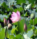 ![]() 正面玄関前には、古代の聖花(供花) パピリスとハスが植えられている |