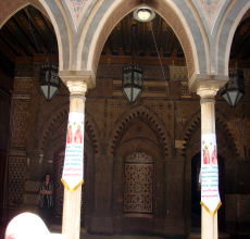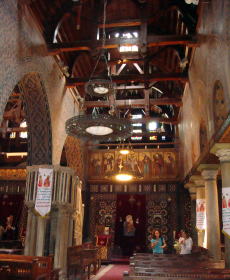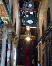 | 3〜4世紀の初めに聖母マリアに捧げるために 建設された教会です ローマ時代の要塞跡や、やしの木を建設の基礎 にしている。 見事な彫刻の説教壇や内装です。 100点を超えるイコンで有名です。 今は、教会の隣のコブト博物館に展示されている 教会内は撮影禁止です |