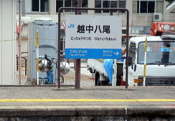 | 近江塩津駅では、細い通路を降りて行って、線路の下を潜ったのでしょうね U字型に又上がります。かなり窮屈な気分でした。 敦賀からは、どっと人が増えて来ました。大半は八尾に行く人達です。 金沢までの道中の半分程は、立っていました。 「降りますからね」、と声を掛けてくれて、やっと座る事が出来ました。 立っている人はつらそうです。 本を読み始めました。 "高橋 治の風の盆恋歌" これが八尾町を見学する のに大変役に立ち、小説の描写で、町の様子が頭の中に描かれたからです。 さて金沢から、こんなに沢山の人が乗って、座れるのだろうかと、心配になりました。 ツワーの人達は、金沢で休憩してから、八尾に行くらしい。 ラッキーです。 私は、直行して、早く行って、町を歩きたいと思っています。 富山から越中八尾の間で、運命の人に出会いました。向かい合わせに座ったからです、 お互いに一人旅だと分かり、一緒に行動する事にしました。 とても心強く成リ、旅が一層楽しいものになりそうです 其れからずっと一緒に、翌日まで、風の町を見て歩きました。 |