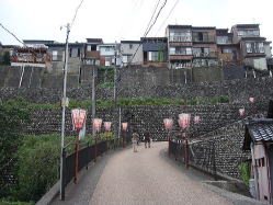 | 町民広場・・・バス駐車 催事場 | 綺麗に詰まれた石垣・絶壁に隣とピッタリの家 | 風の盆・・・どんな旅に成るでしょう |