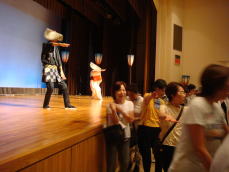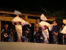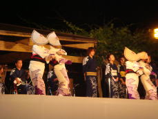 八尾小学校特設ステージ 最後、とりの町の踊りのです。きっと一番なんでしょうね 各町内11支部あるそうです 夫々浴衣も違い踊りも決められた なかで工夫して、プライドを掛けて競い合っている様に思いました。 |