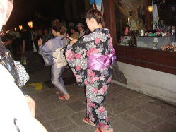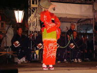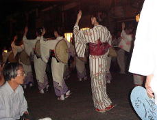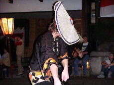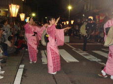 | 更に夜が更けて行きました。 綺麗な浴衣を着た人達が繰り出して来ました 町を挙げての風の盆に、思いを込めて、 又来年までの日々を思ってか 静かに、気持を込めて踊っていました。 |