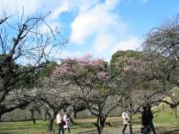 ![]() 天守閣から見た梅林 | ![]() 梅林はまだ5分咲き | ![]() |