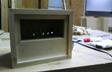 飾り&面取りを施して、本組み、のり付けをしました。面取りはボーズ面取り、一応白鳥のつもりの穴(この穴、auto dimmer機能を付ける際の、cdsセル用の穴です。)そして幅木(というか台輪)を付けました。 表示部には後ろから透明のアクリル板を接着しています。 |