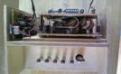 どう作ろうかと模索しながら、とりあえずたたき台のつもりでこのようなものをつくってみました。写真は正規の向きではなく、組み立ての最中のため90°寝かしています。向かって左が下、右が上で、6個並んで空いている穴から蛍光表示管を出します。 |