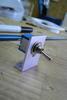 ↑ドリルで空けた穴の径をシャーシリーマで広げているところです。 |