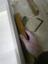 奥のほうなど、暗くて塗面の状況が分かりづらい箇所は、明かりを当てて塗り残しやムラがないか確認します。 写真の左下、白く写っているのは白熱灯の明かりです。 |
