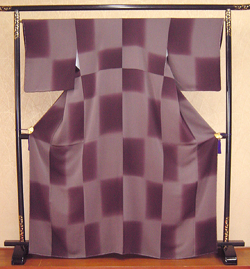 大きな市松模様は、グレーと小豆色。ぼかしてあるので、優しい雰囲気です。カチっとした市松模様が苦手な方にもおすすめ。女性らしい小紋です。