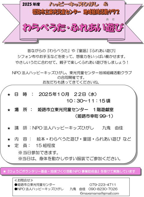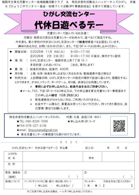 平素はハッピーキッズひがしの活動にご理解・ご協力をいただありがとうございます。