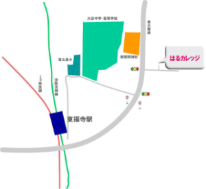 JR�ޗǐ��������w�܂��͋��㋞�s���������w��o�Ėk�Ɍ������A���R���w�Z�̂����_�𓌂ɕ��ē���H�ʂցB��O�����̌�_��k�ɏオ���Ĉ�ڂ̐M���𓌂ɁB�w����k��7�C8���B�B