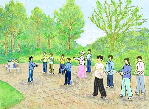 緑の公園の木々の中、鳥のさえずりを聞きながら、劉莉先生、谷先生のご指導を受けて早朝錬習をしたこと、朝食後また練習したこと。この夢のような光景は、ずっと私の脳裏に焼きついていることでしょう。
