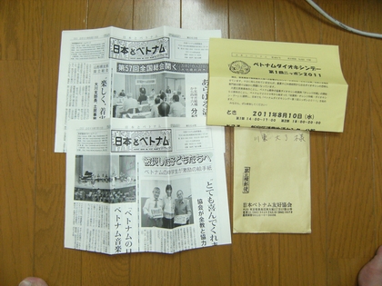 最後になりましたが、日本ベトナム友好協会の方は、当初より、電話にて親切な対応をして下さっており、7月22日に会費を振り込むと直ぐに