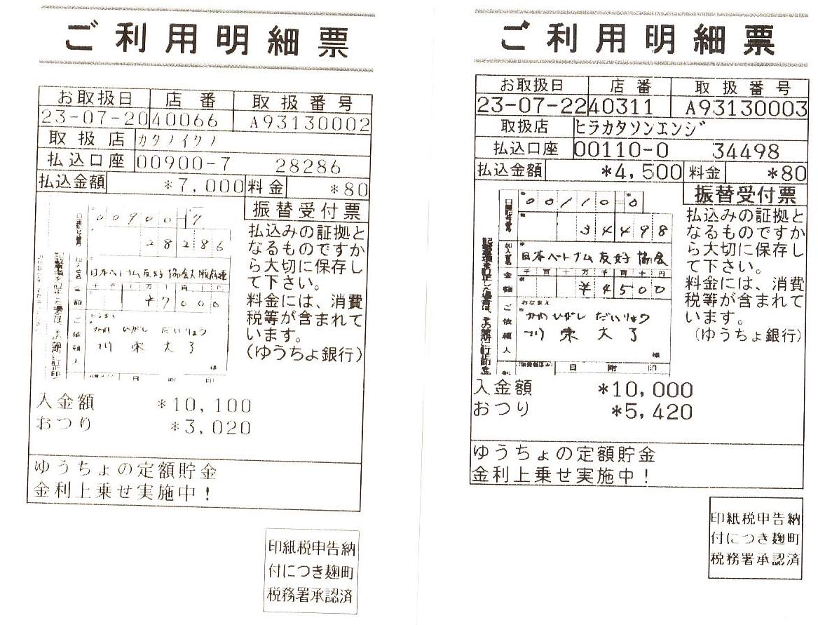 トップに掲載していた振込みの控えをこちらに引っ越ししました。