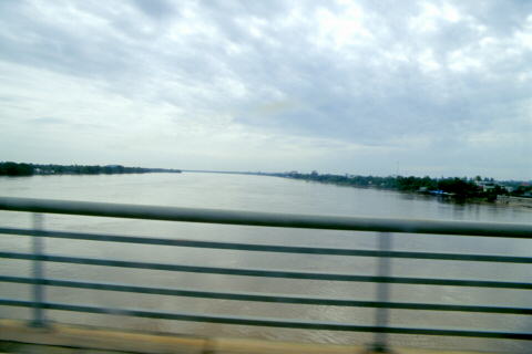 この橋は徒歩で越えることが出来ず,シャトルバスを利用しなければなりませんが,頻繁に運行されているので不便はないでしょう。このシャトルバスは日本のODA(政府開発援助)によってラオスが購入したもののようです。橋の中央には鉄道線路が敷かれており,タイ側の工事は完了していますが,ラオス側は未完成です。開通の予定は未定。
