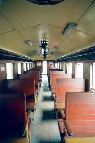 タイ国鉄の3等客車には木製座席の客車が存在します。ウッディ感覚満点のなかなか美しい車内です。