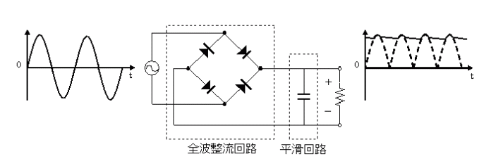各種の電子機器を動作させるためには安定な直流電源が必要である。通常直流電源は工場や各家庭に送られている交流電圧を直流電圧に変換しており、この交流を直流に変換する操作を整流と呼ぶ。時間的に一定の安定した直流電源電圧にするには、交流電源からダイオードを用いた整流回路で整流化し、それを平滑回路によって平滑化し、さらに安定化回路で安定化する必要がある。