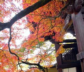 | 光明寺・薬医門のところの紅葉がすばらしいですが、これは僕の写真の腕では伝えられません。*写真は自然を切り取って見るわけですから、その良さは視点をいかに面白くするかにかかってきます。(勿論、記念写真でも同じ事です。)*プロとアマチュアの差は歴然としています。そういう想いでトリミングしてみました。 |