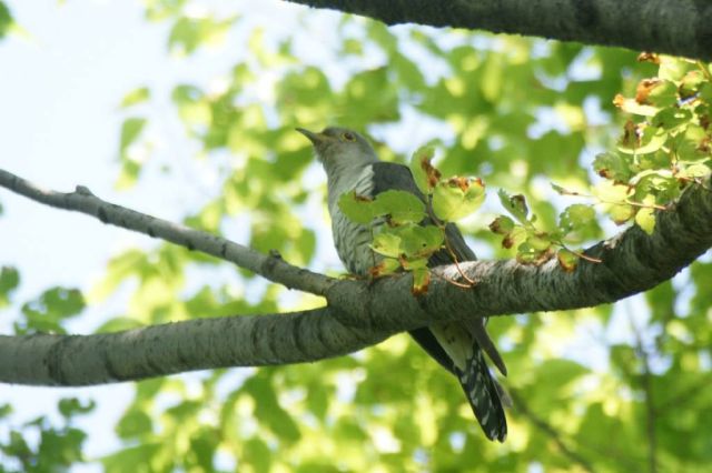 毎年決まって5月25日頃に鳴きはじめるのがホトトギスである。杜鵑、時鳥、子規、不如帰、沓手鳥、蜀魂など多数の呼び名を持つ。「鳴いて血を吐くホトトギス」といわれるように、一途な思いを表すたとえに使われる。たしかに「てっぺんかけたか」と聞こえる鳴き声は激しいものがある。2丁目を下ってバスロータリーから南あたりでよく鳴いているが、なかなか姿が見えない。朝早く自宅からすぐ近くに聞こえることもあるが、すぐ飛んで行ってしまうのか、続けては聴かれない。