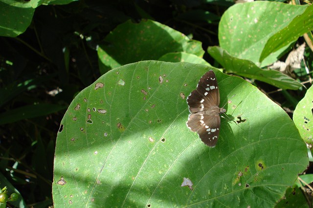 チョウの写真は,我がカメラではなかなか撮れないのですが,このチョウは,かなりじっとしていてくれるのでありがたい。ダイミョウセセリ…だと思います。「大名」から由来する名なのだそうですが,なぜ「大名」なのでしょうか?知りたいところです。このチョウ,関西型と関東型ではずいぶんと異なっていて,この写真はもちろん関西型で,下翅にも白い帯がありますが,関東型ではこれが無いそうです。比叡平では,比較的よく見かけます。
