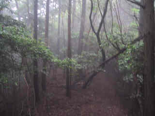 小雨降る山中
