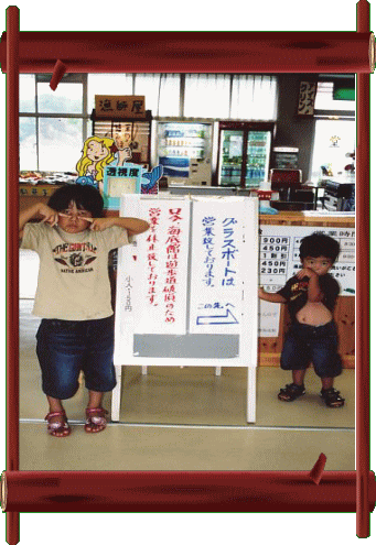 | 「足摺海底館」へ ここは水族館とは違って,建物が海の中にありそこで海底を見る.自然のままの野生の魚を見ることができる施設です. ところが!!!台風の影響で破損してしまい今日はやってないとのこと!(◎o◎)! 大量の芋けんぴ調達! 予定変更… |