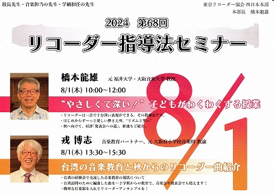8月1日「リコーダー指導法セミナー」(東京リコーダー協会西日本本部)