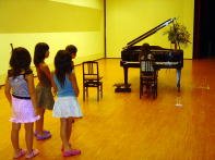 | 神戸、「北野工房のまち」の講堂でのコンサートに出演させてもらいました。普段はコンサートには行けない小さな子供さんや付き添いのママさんたちにも生の音楽をきいてもらおうという催しです。私の師匠、吉田順子先生との連弾コンサートだったのですが、かわいらしいお客さまを前にして、またみなさんに盛り上げていただいて、演奏する私たち自身が大変楽しいコンサートとなりました。お客さまたちにその楽しさが伝わっていればウレシイな〜と思います♪ |