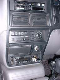 ●オーディオと無線機 オーディオはアルパインの安いタイプをチョイス。 ステーは発売してなかったので、100円程度の 穴のたくさんあいた棒状のステーをU字に曲げて 無理矢理作成。適当です。 CDチェンジャーは荷台に置きました。 無線機も同じようにステーを曲げて作成。 この例はあまりよくありません。 無線機は熱がすごいので、なるべく外に(足下など) 取り付けましょう。 マイクスイッチは4駆ギアーに取り付けました。 |