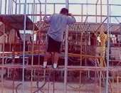 ![]() やけどのシーンは家庭科室で 撮影しました。 |