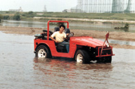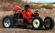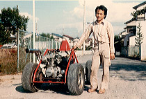 スクータのエンジンを取り付けフロントはサスペンション付で減速比を 1/2.8にしてオフロード仕様にした.