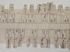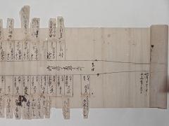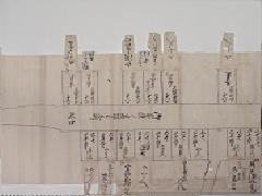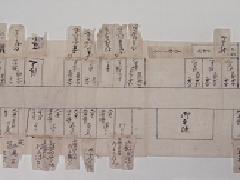 この宿割には、年号などは書かれて無く、いつの誰のものかは、永らく不明でしたが、最近、紀州藩主徳川吉宗という本を執筆された、和歌山大学の名誉教授、藤本清二郎先生が、当家の史料を、お貸しした関係で、その御礼にと言う事で、調べて下さいました。書かれている何人かの家来の家譜、系譜から、その役職に就いていた年代を調べて頂き、ついに文政五年(1822年)、2月5日の十代藩主、治宝(はるとみ)公の江戸参府の行列と、特定されました。和歌山県立文書館等に何回も、足を運び、貴重なお時間を割いて頂き、本当に有難う御座いました。