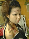 | 三味線の仕事。 先輩のおねえさま方を乗せてベンツを運転。超緊張。無事帰れてよかった、ほんとに。 舞台用の化粧品でお化粧させてもらう。 マッチロ!手も首もマッチロ!色白さんに大変身。みなさんにかわいがっていただき、おもしろかったー。 おねえさま方 |