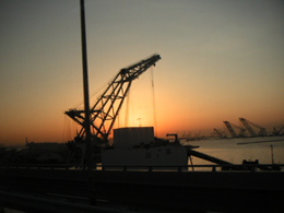 日の出を眺めながら関空へと向かいます。ねむたー。
