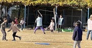 プレイリーダーより11月の遊ぼう会では青空の下、運動場のトラックを何周も走っている友達を見つけて一緒に走りだす子や、タイムを計って応援する子もいました。ただ走るだけで楽しそうです。大勢での鬼ごっこでは、楽しそうに逃げ回っていました。大型遊具の上でお喋りをして笑いあう声、サッカーボールを追いかけて力強く蹴るボールの音が運動場に響きます。これから寒くなりますが、12月も遊ぼう会でたくさん体を動かして遊びましょう。 |