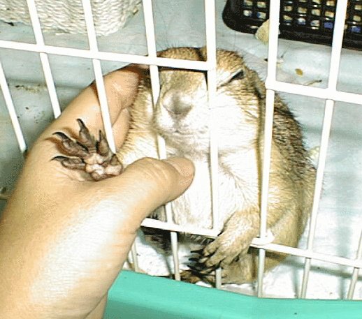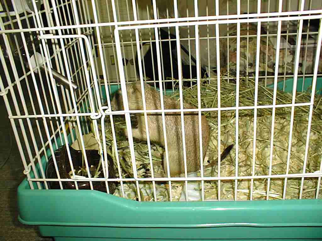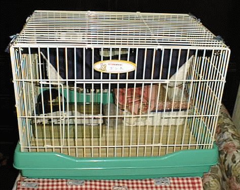 左はトイレと餌入れ。トイレは、砂遊び場にもなってるんだよ。