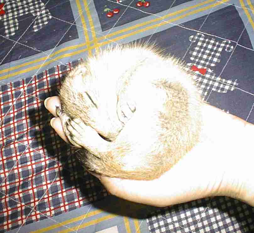 初めて家に来た日のコロンです。 まだ生まれて2ヶ月くらい。 来た日が4月6日なので、お誕生日は2月6日と言うことに・・・ 家について、箱の中から顔を出すコロン。 足によじ登ってきました。 きょとんとした顔・・・ここはどこ? 疲れて寝てしまいました。 まだ幼児体型のコロン。