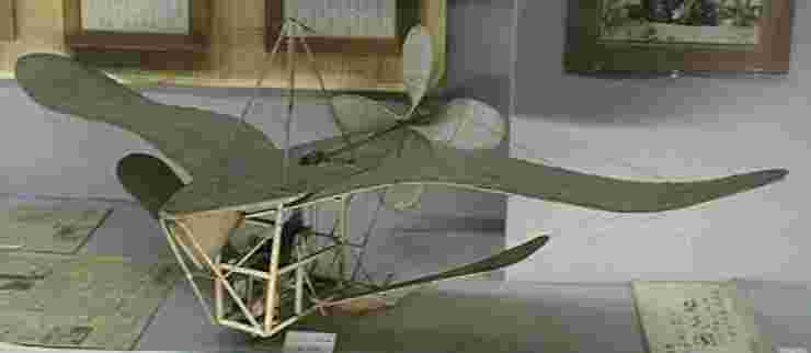 左は人が乗れるように設計された「玉虫型人力機」の模型。