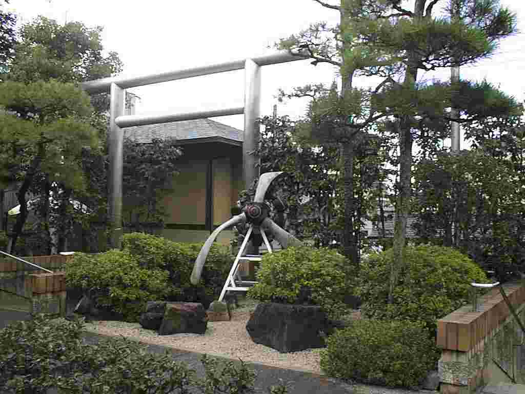 大正4年二宮忠八が自邸内に世界中の航空殉難者の霊を祀るために創始した神社である。 二宮忠八(1866-1915) は、わが国初の飛行機発明者で、日本航空界の先駆者で 明治 24年「カラス型飛行器」というゴム動力によるプロペラ式の模型飛行機を発明した。 プロペラ式の模型飛行機としては世界初であった。 さらに工夫を重ねて、人を乗せて飛べる「玉虫型飛行器」の模型を完成させたが、 動力部分は個人の努力と資金だけでは限界があった。 そこで陸軍上部に設計図をそえて飛行機研究の採用を求める上申書を提出したが、 夢物語と却下されてしまった。 独力で完成させることを決意した忠八は、大阪で製薬会社に入社し、 薬品の改良研究で業績をあげ資金をととのえた。 しかし、明治36年世界初の有人飛行実験の成功はライト兄弟によって先を越されてしまった。 忠八の設計図は16年も前にすでに完成していたのに。 それ以後飛行機制作を断念した彼であったが、飛行機墜落の事故を聞く度に犠牲者の死を悲しみ、 航空事故の防止・犠牲者の冥福を祈るため私財を投じて神社を建設した。 それが日本初の航空関係神社「飛行神社」である。 |