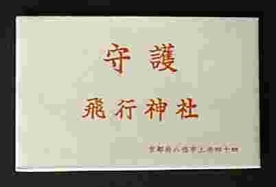 お札、お守りなどいくつかの種類置いてありますが、 その中でも左の写真はパラグライダーやハングライダーに 乗っているフライヤーの方用のお守りだそうす。 その中には右の写真ように、ピニールに包まれた お守りが入っています。 これなら、もし雨に濡れても大丈夫ですね。 |