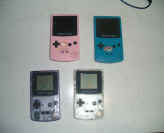 | なんと気が付けばゲームボーイカラーが4台もある。クリアが私、クリアパープルがとも、グリーンがゆう、ピンクがあいちっちとみーちゃ用です。壊れてしまいましたが初代は3台ありました。 |