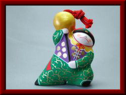 | 長崎には、長崎凧(はた)の他に、バラモン凧、鬼洋蝶と呼ばれる奇怪な絵柄の凧があります。それを土鈴にしたのが鬼洋蝶土鈴です。 渡辺綱の羅生門の鬼退治がモデルといわれ、魔除けにふさわしい土鈴といえます。 石山邦子 著 「土の鈴」から引用 |