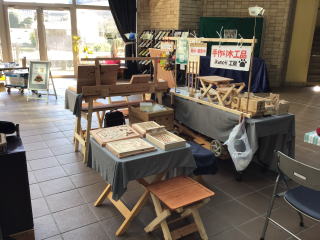 趣味と老後の健康維持を兼ねて工房で制作した手作り木工品の展示販売です。
