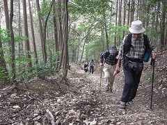 7日は山の会でハイキングの予定でしたが、いささか差しさわりがあって会としては遠慮することに・・・替わりに有志のプライベートハイキングとなりました。 前日の土曜日は絶好の日和だったのですが、この日は生憎の曇り空。目的の二上山へ向かう車の道中でも雨がパラつく有様です。 走ること1時間で道の駅ふたかみ當麻に到着します。えらい混みようです。ハイキング基地として利用されているからでもあるのでしょう。 駅の裏手から歩き始めると、道沿いの畑と林の向こうに目的の二上山がくっきりとその姿を現わしています。奈良の山に似つかわしい、いかにも優美な姿です。 10分ほどで加守神社に到着します。どうやら神社の裏手が登山口になっている模様です。張り巡らされた獣除けの柵の奥に、急こう配の階段が見えます。 植林帯を縫うように階段状の登山路が続きます。結構な段数です。数百歩登るごとに立ち止まって息を整えます。不思議なことに日曜日にもかかわらず、ハイカーの姿は殆ど見られません。 雄岳山頂は丁度正午。大津皇子の墓があって、墓を守るように男性がひとり座っています。二上神社の美化保存協力費二百円也を申し受けるとのことで、御苦労なことです。 雄岳から一旦鞍部に下って登り返すと雌岳の山頂にでます。此処雌岳は公園のように整備されていて、流石にハイカーが多い!反対側から登って来た人たちなのでしょう。 幸いこの頃には曇り空にも晴れ間が広がって、時折太陽が顔を覗かせます。山頂の一角に陣取って、お昼を取ります。暑くもなく、寒くもなく丁度頃合いの気持の良いハイキング日和となりました。 ゆっくりとした昼食を済ませると、あとはひたすら歩くのみ。道の駅を起点に二上山を周遊するようなコースですから距離はたっぷりあります。 石光寺、当麻寺を経由して道の駅に戻り着いたのは丁度3時でした。駅近くの喫茶店で喉を潤します。ハイキングにしては皆さん結構きつかった様子ですが、爽やかな秋空の下、10時から3時まで5時間の運動量は丁度頃合いだったかも知れません。 |