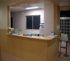 受付です。笑顔のスタッフがお出迎え。 初めての方は問診表の記入をお願いします。
