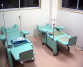 点滴室。 ベッドがリクライニング式なので、好きな姿勢で点滴が受けられます。