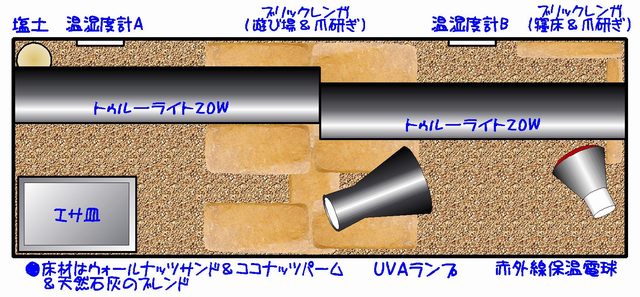 | 15才/飼育188ヶ月(2010年2月現在) | 紫外線灯: トゥルーライト 20W x 2/UVA電球 50W |