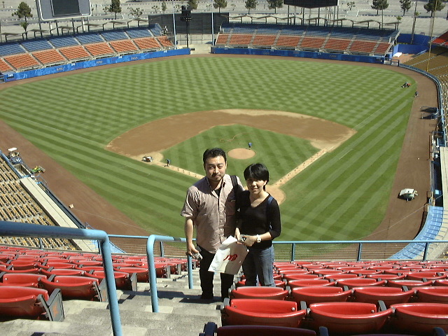 ロスに着くと現地係員が出迎えてくれ、その場で初めて出会った4組8名の男女と共に「ツアー込み」の強制市内観光へ。これはコースにフィックスされているイベントで変更のしようがないのですが、サンタモニカからビバリーヒルズ、メルローズ通りやハリウッド、ダウンタウンを経てリトル東京、ドジャースタジアム…と、なかなか気合いの入った王道コースだったので家内は勿論、僕も大満足でした。ただ朝8時からの観光だった為に、当然の事ながら殆どのショップはまだ閉まっており、出来たのは文字どおり本当に純粋な「観光」だけ。ショッピング目的の無い僕たち夫婦にとっては別にどうってことなかったのですがアツアツの新婚旅行組には可哀想なツアーでした。この時の8名ともコミュニケーショ